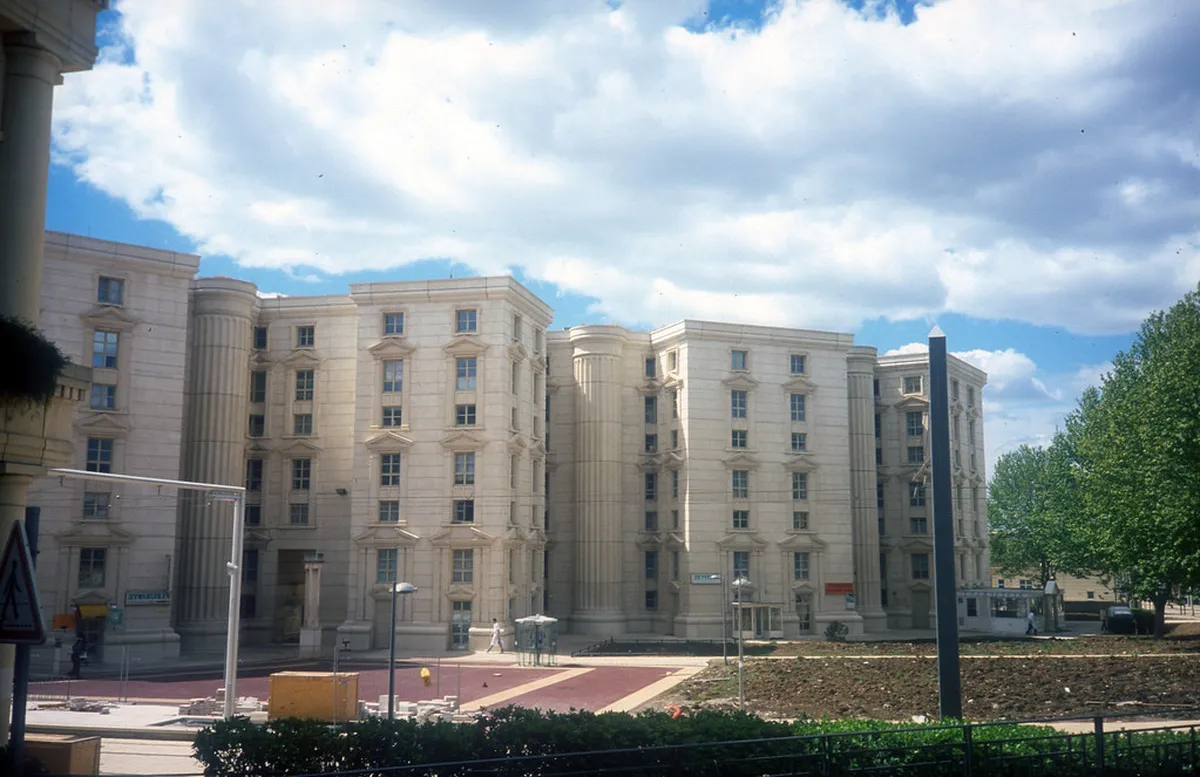 Bofill's design reflects classical Greek and Roman influences. He used monumental scale and symmetrical layouts. The district features vast public squares and tree-lined avenues. These elements evoke ancient city planning principles.